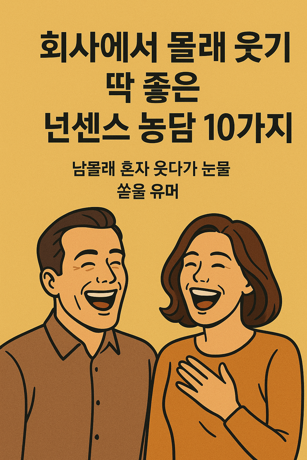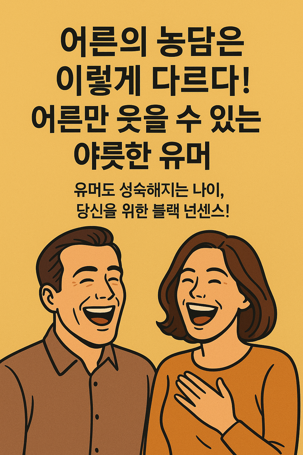 웃음 뒤에 숨은 진실, 그리고 어른들의 속마음 👋 인트로: 어른들만 웃는 그 농담들..."어른이 된다는 건 웃음의 질이 변한다는 것."우리는 자라면서 '웃긴 것'과 '웃어도 되는 것' 사이의 경계를 배웁니다. 하지만 때로는, 그 경계를 발로 뭉개버리는 유머가 필요하죠. 바로 오늘이 그런 날입니다.이 콘텐츠는 18세 이상만 이해하고 즐길 수 있는, 위트와 풍자, 약간의 쓴웃음까지 담긴 넌센스 유머 10개를 소개합니다. 이왕이면 혼자 읽으세요. (왜냐면... 웃다가 곤란해질 수도 있으니까요! 😏)🤡 넌센스 유머 ①: "결혼이란?"Q: 결혼이 뭐예요?A: 인생 게임의 하드모드.근데 저장은 안 됨. 자동저장도 아님. 빠른 이동도 없음.📝 해설:결혼은 흔히들 인생의 안정이라고 하죠. 하지만 현실은? “왜 ..